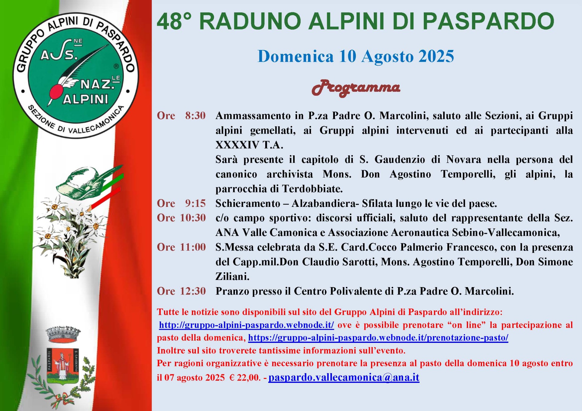 IL GRUPPO ALPINI DI PASPARDO E' LIETO DI INVITARVI AL XXXXVIII RADUNO ANNUALE